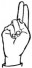 На ћирилици написано АЛЕКСАНДРА НИЦОВИЋ састоји се из 17 слова [?]. Исписано ћириличном једноручном азбуком за глувонеме: